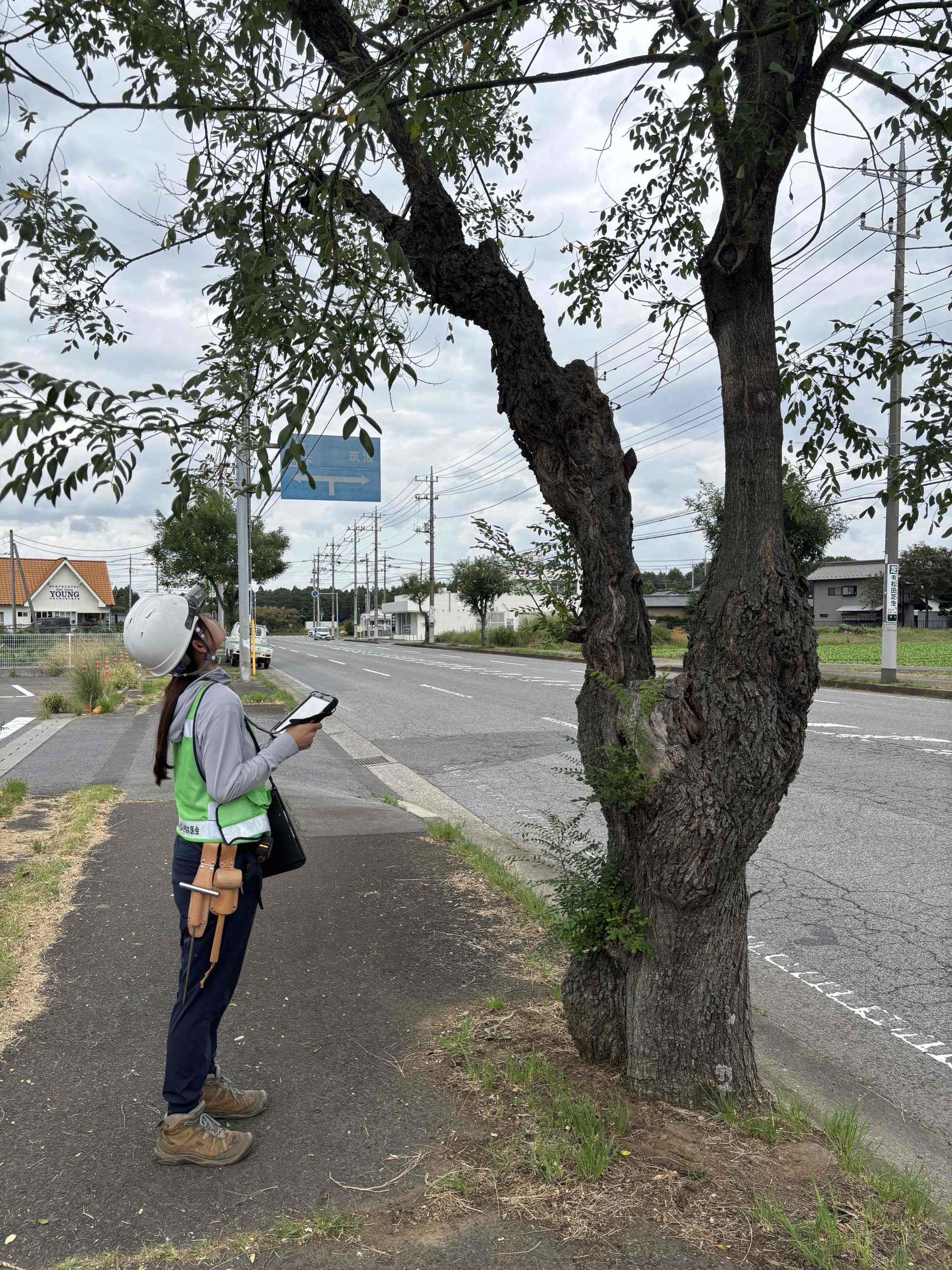 樹木点検、診断を行っております。倒木リスクの早期発見は地域の安全を守る一歩です。専門知識と確かな技術で、地域の樹木を責任をもって点検し、安全と景観維持に貢献します。