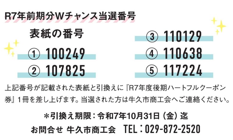 令和7年度 前期ハートフルクーポン券のWチャンス当選番号を発表します!