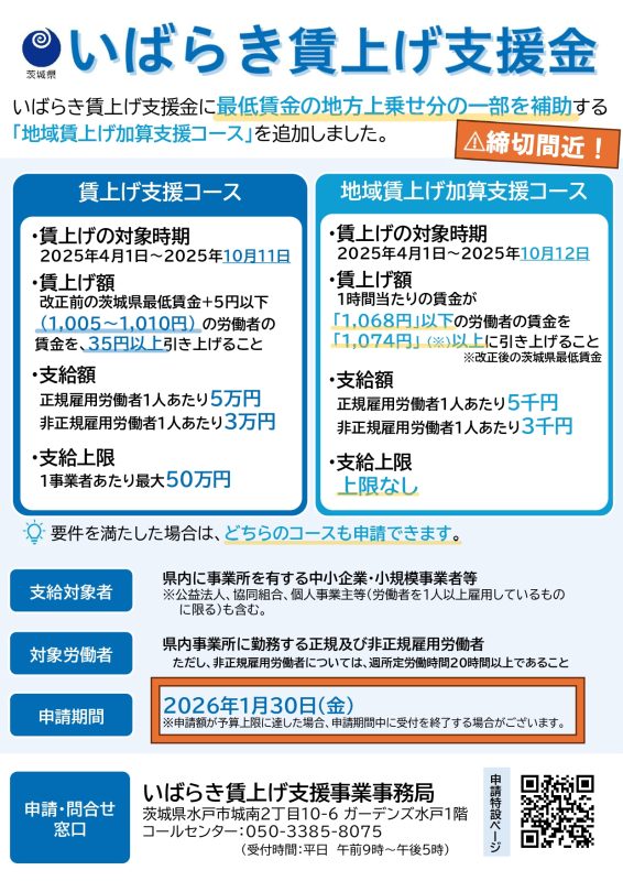 【締切間近!】いばらき賃上げ支援金